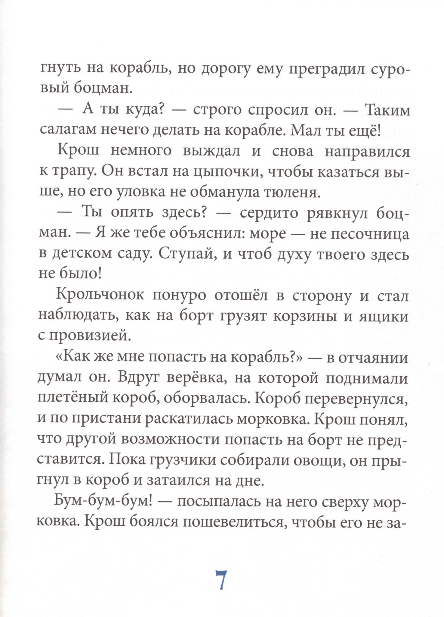 Знаете, как кролики попали в Австралию? Конечно же, они приплыли на корабле. В пути их поджидало немало опасностей. Им даже пришлось сражаться с пиратами – настоящими морскими волками. Но в конце концов капитан Панцирь и его помощник крольчонок Крош вместе со своим другом попугаем Боцманом оказались победителями.