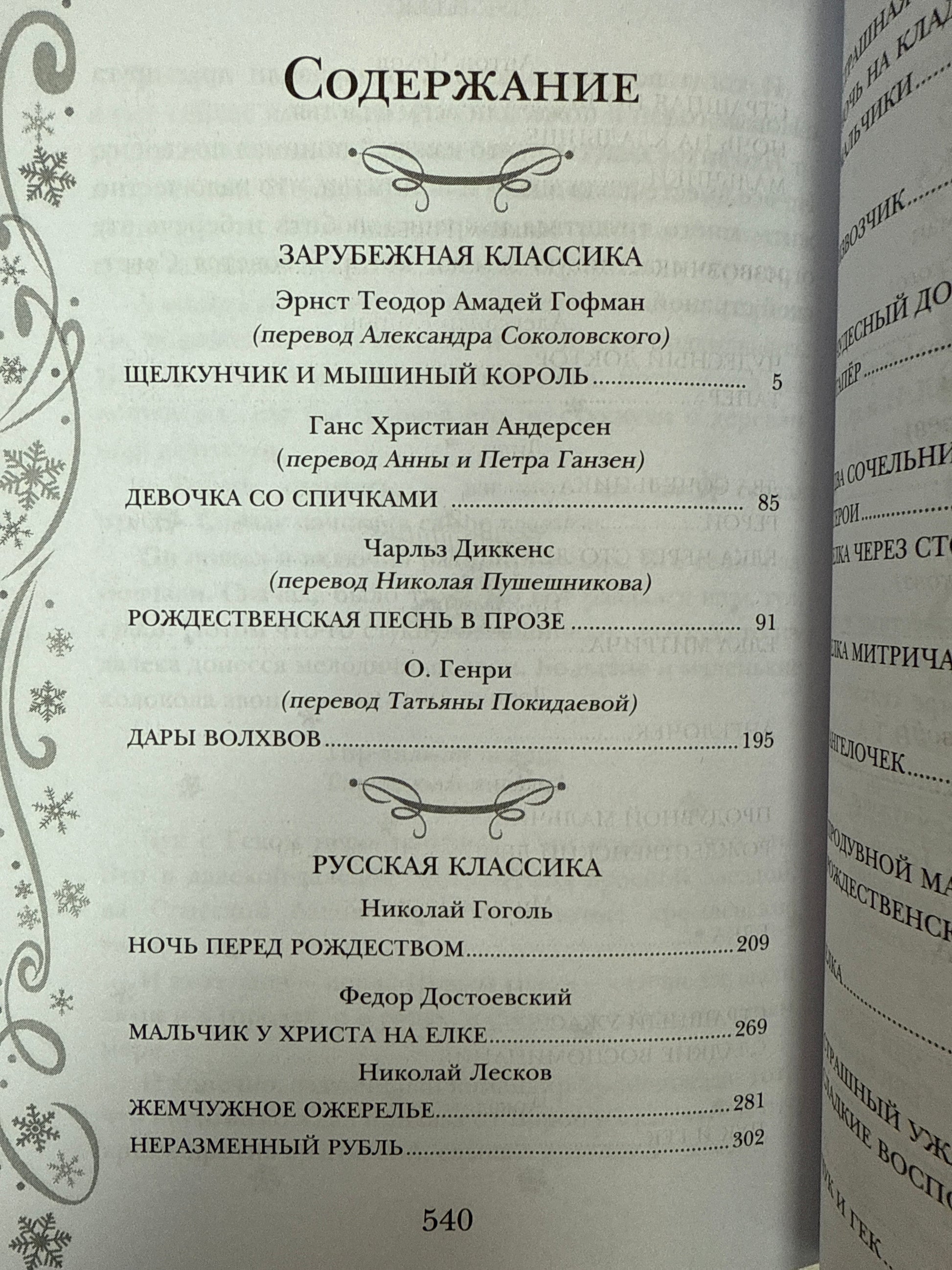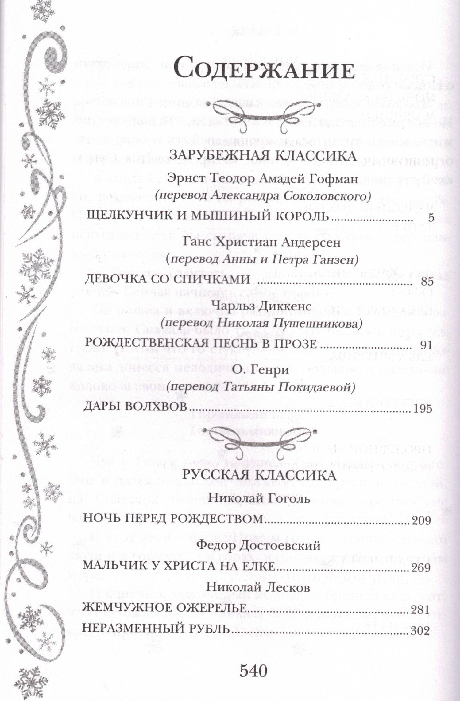 Самые известные и самые любимые рассказы и повести, написанные зарубежными и русскими писателями в жанре святочного рассказа. "Щелкунчик и мышиный король" Э. Т. А. Гофмана и "Ночь перед Рождеством" Н. Гоголя, "Девочка со спичками" Г. Х. Андерсена и "Жемчужное ожерелье" Н. Лескова, "Дары волхвов" О. Генри и "Чук и Гек" А. Гайдара... Сказки и были о чуде и об ожидании чуда в самую волшебную ночь.