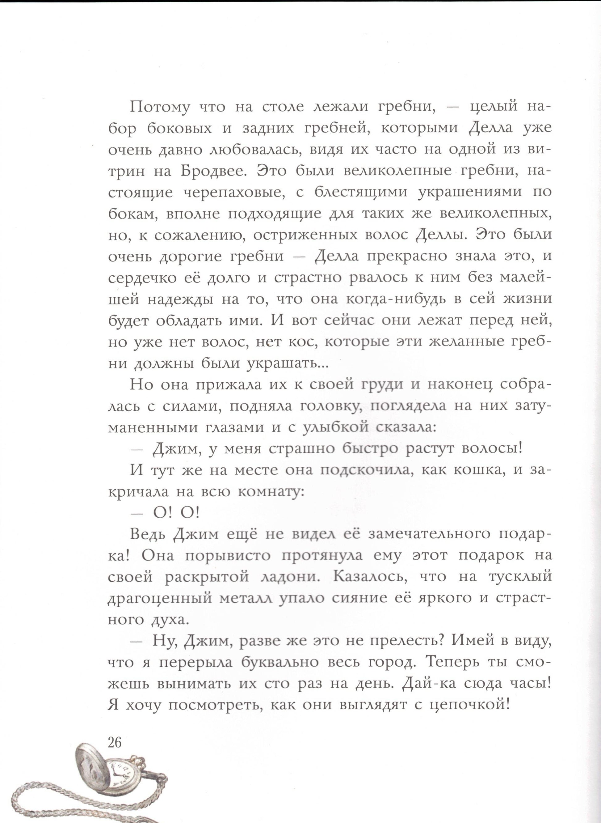 Аннотация к книге "Дары волхвов" О. Генри:От волхвов пошёл обычай дарить на Рождество подарки. Волхвы были мудры, в отличие от двух влюблённых героев этого рассказа, снимающих бедно обставленную квартирку. Но это не помешало им подарить на Рождество друг другу подарки, неблагоразумно пожертвовав друг для друга самым дорогим, что у них было…Рассказ О. Генри "Дары волхвов" считается одной из лучших и трогательных историй о любви. Книга впервые выходит с иллюстрациями известного художника Вячеслава Люлько.Для среднего школьного возраста. Читать дальше…