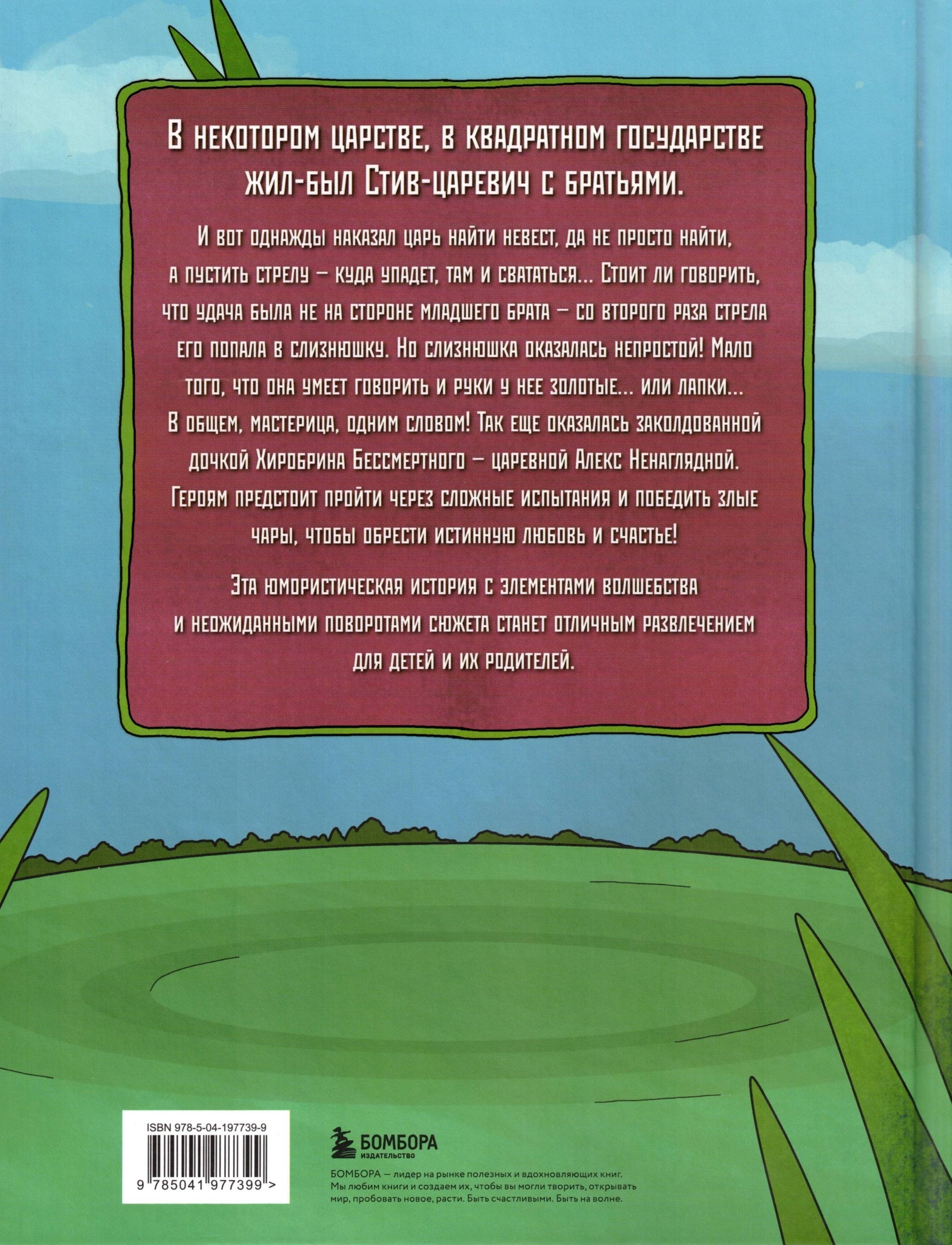 В некотором царстве, в квадратном государстве жил-был Стив-царевич с братьями. И вот однажды наказал царь найти невест, да не просто найти, а пустить стрелу, — куда упадет, там и свататься… Стоит ли говорить, что удача была не на стороне младшего брата — со второго раза стрела его попала в слизнюшку. Но слизнюшка оказалась непростой! Мало того, что она умеет говорить и руки у нее золотые… или лапки… В общем, мастерица, одним словом! Так еще оказалась заколдованной дочкой Хиробрина Бессмертного — царевной Алекс Ненаглядной. Героям предстоит пройти через сложные испытания и победить злые чары, чтобы обрести истинную любовь и счастье!Эта увлекательная история с элементами волшебства и неожиданными поворотами сюжета станет отличным развлечением для детей и их родителей.