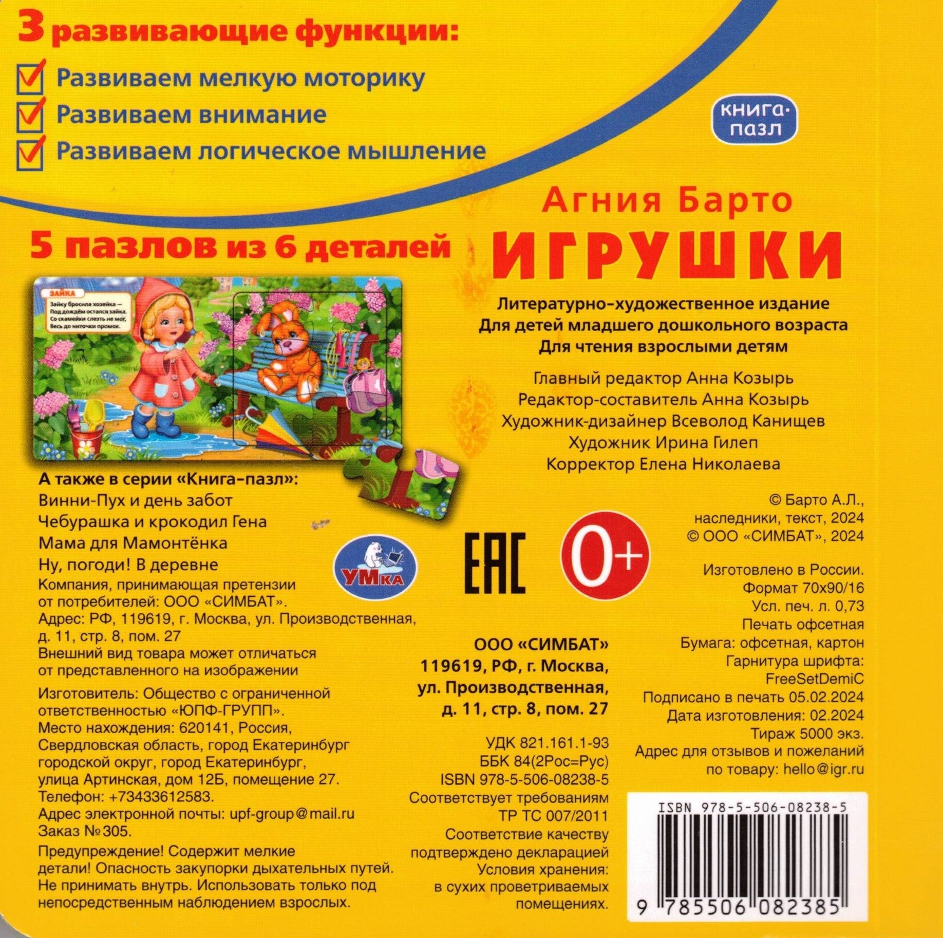 Игрушки А.Барто Книга с 5 пазлами