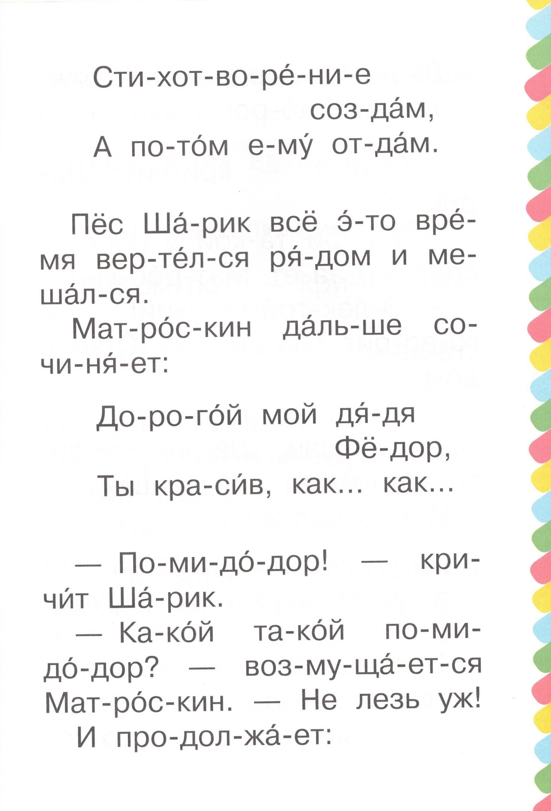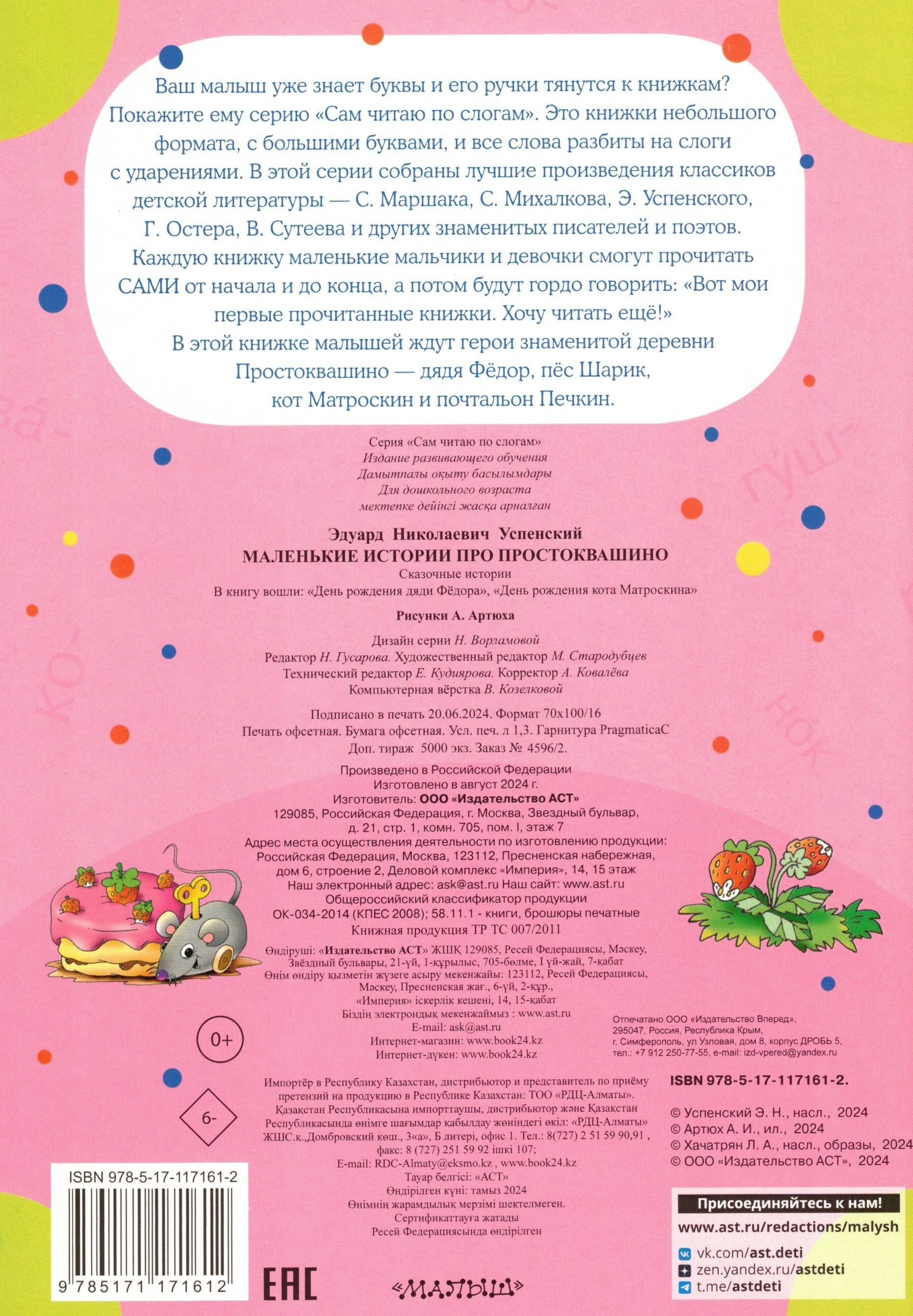 Ваш малыш уже знает буквы, и его ручки тянутся к книжкам? Дайте ему книжку из серии "Сам читаю по слогам".Эти книжки небольшого формата, с большими буквами, и все слова разбиты на слоги с ударениями.В этой серии собраны лучшие произведения классиков детской литературы — С. Маршака, С. Михалкова, Э. Успенского, Г. Остера, В. Сутеева и других знаменитых писателей и поэтов.Каждую книжку маленькие мальчики и девочки смогут прочитать САМИ от начала и до конца, а потом будут гордо говорить: "Вот мои первые прочитанные книжки. Хочу читать ещё!"В этой книжке малышей ждут герои знаменитой деревни Простоквашино - дядя Фёдор, пёс Шарик, кот Матроскин и почтальон Печкин.