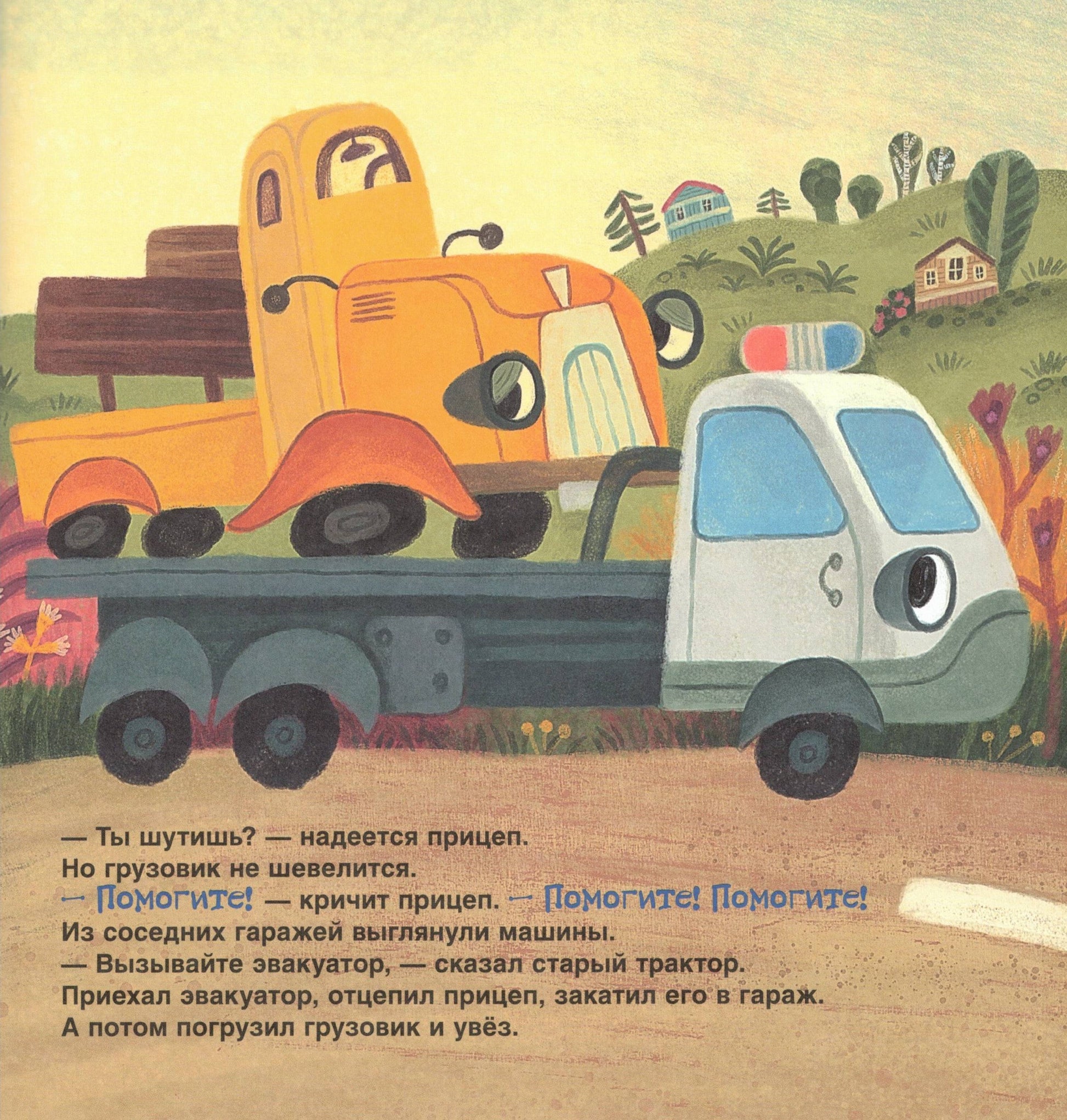 Выехал как–то утром грузовик из гаража — и заглох. Приехал эвакуатор и увез грузовик, а куда — неизвестно. Не может прицеп без своего грузовика, надо его найти! Малышу предстоит побывать на свалке старых машин и встретиться с таинственной автогадалкой Мамаздой. И как всегда, на помощь грузовику и прицепу приходят друзья.