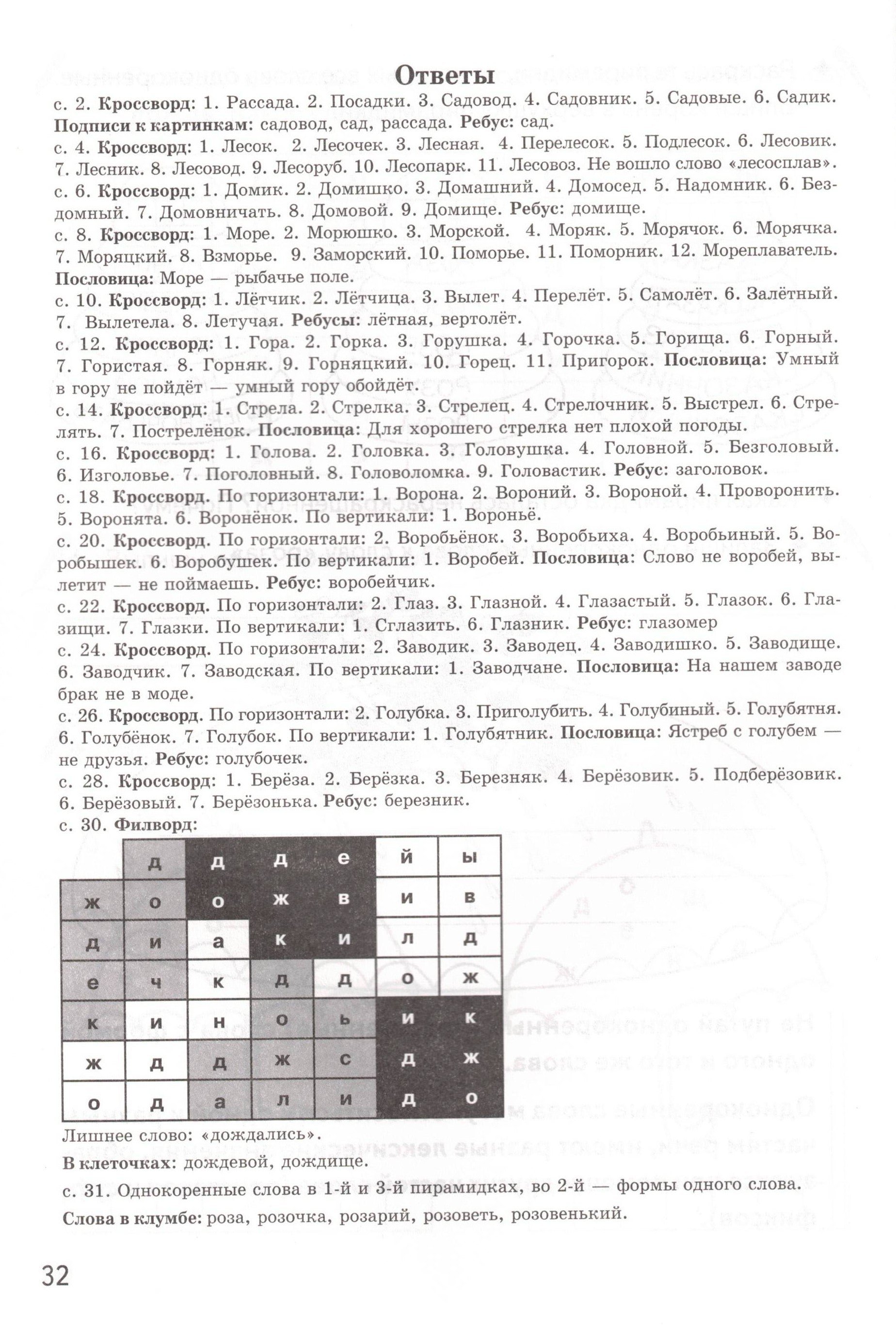 Рабочая тетрадь. Однокоренные слова. Корень слова. Кроссворды, филворды, ребусы 7-11 лет