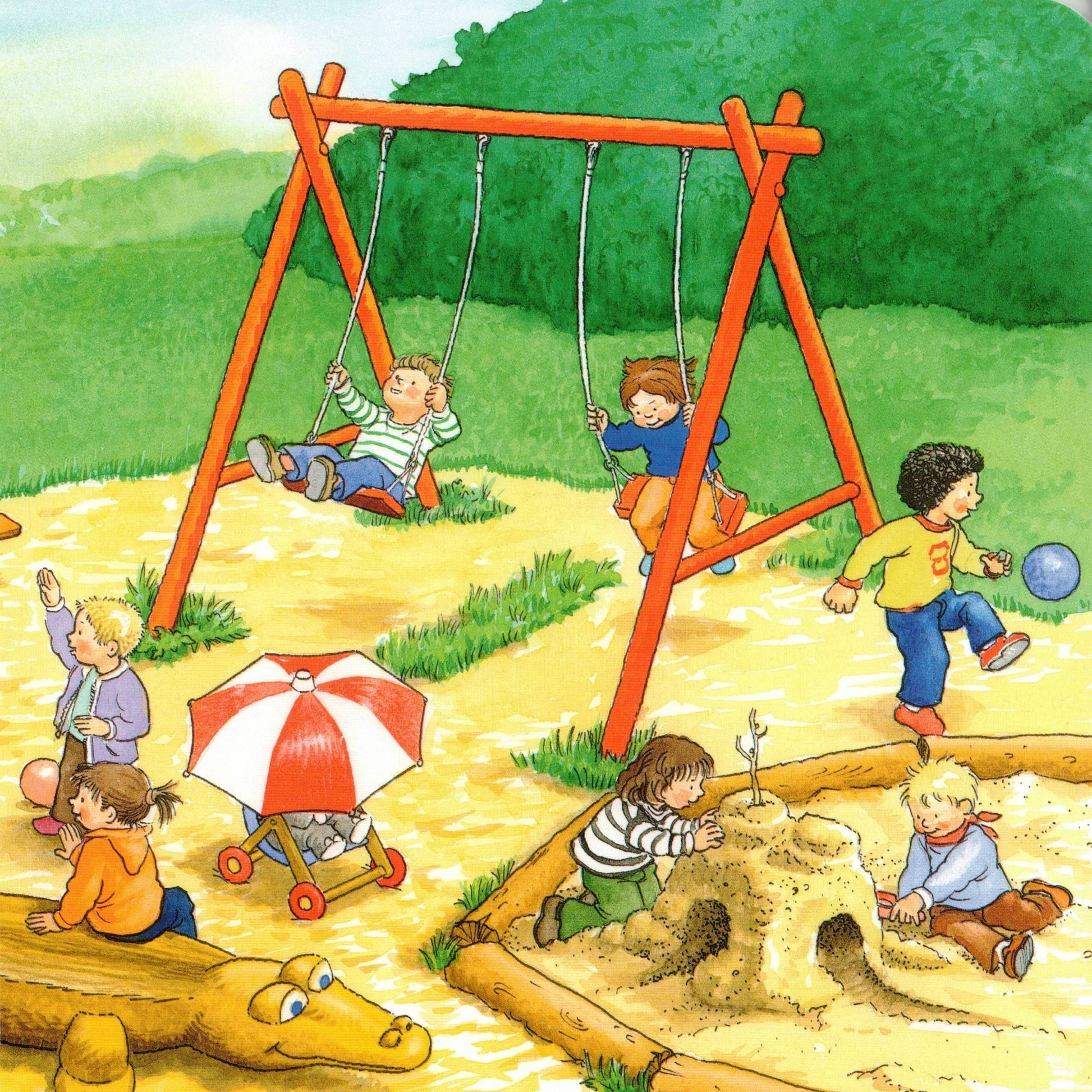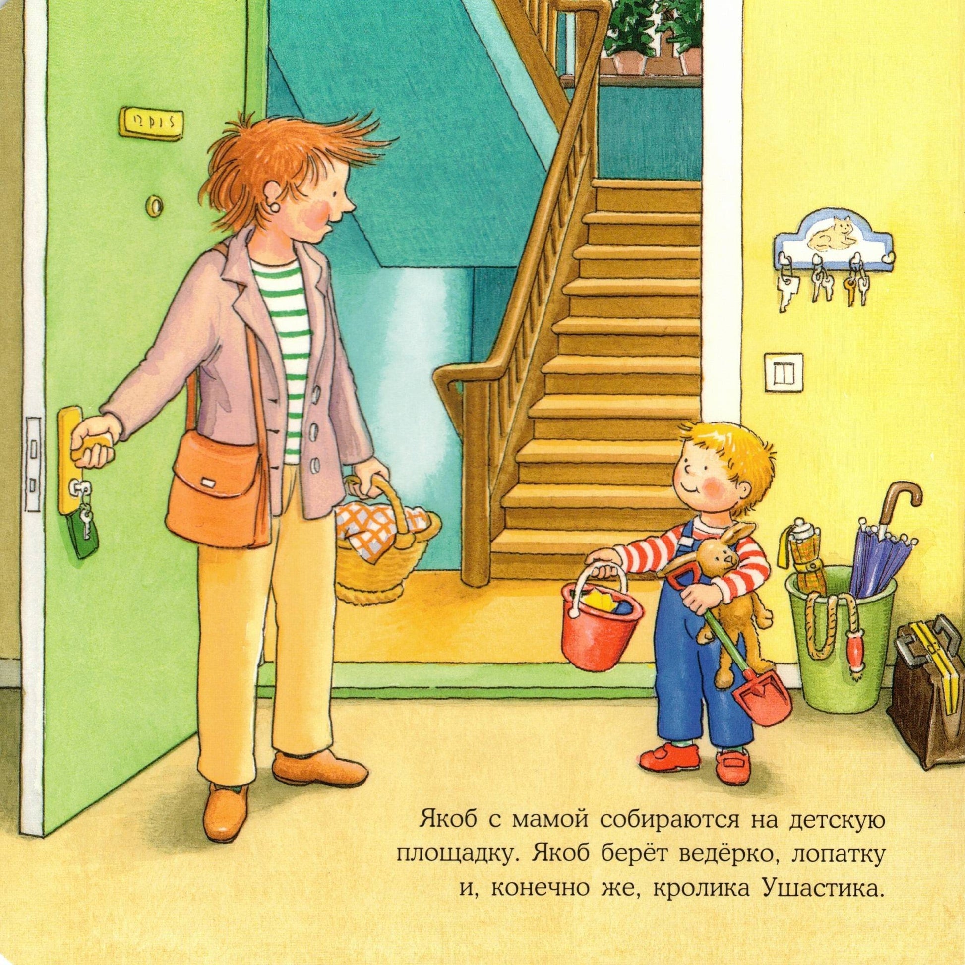 Якоб идет на детскую площадку. Там его уже ждет друг Пауль и другие ребята. На площадке столько всего интересного: можно качаться на качелях, лепить куличики и играть в прятки! Главное, быть внимательным и не уходить далеко от мамы.