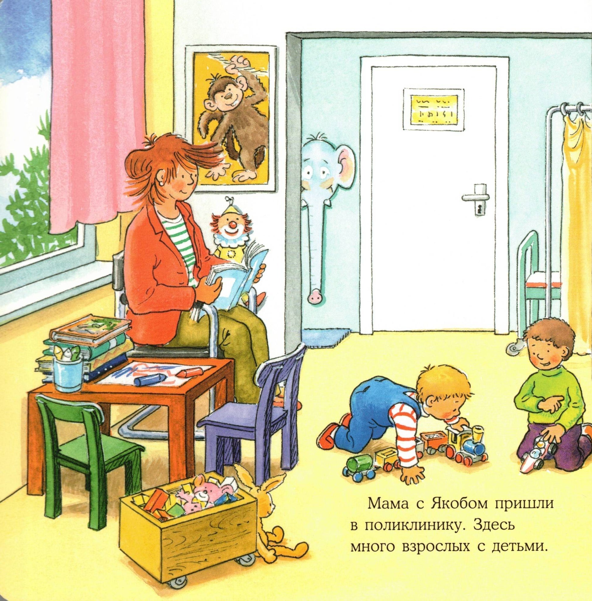 Визит к врачу — стресс для ребёнка. И не всегда от нас, родителей, зависит, насколько спокойно всё пройдёт. Но стоит всё-таки подготовиться заранее. А история маленького Якоба и мудрые советы опытной мамы и педагога Сандры Гримм вам в этом помогут.Вместе с Якобом малыш перестанет бояться врачей, узнает, как проходит осмотр в поликлинике, и станет ещё храбрее и увереннее в себе.